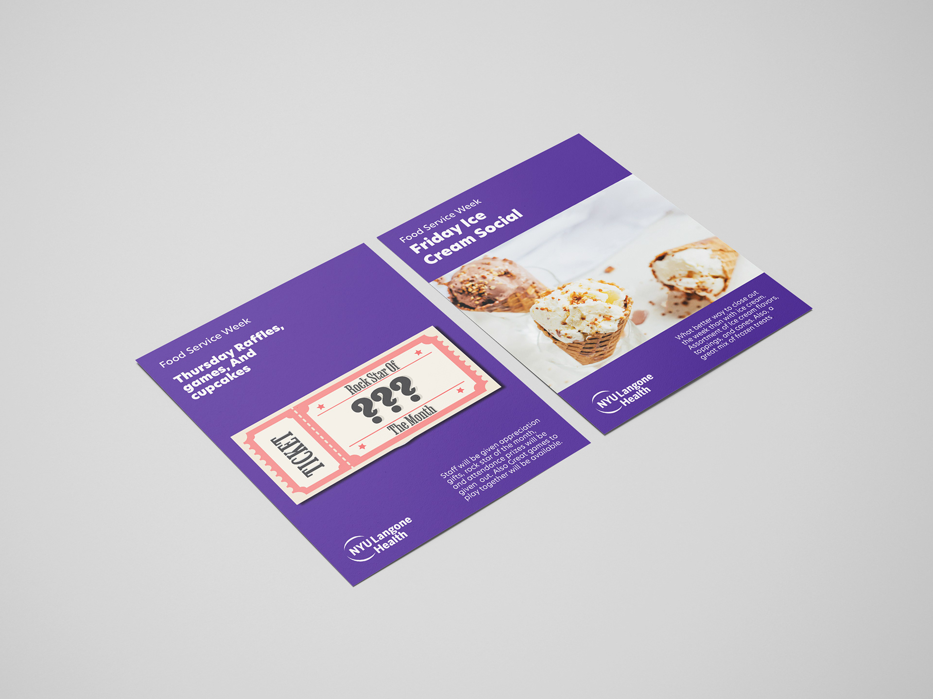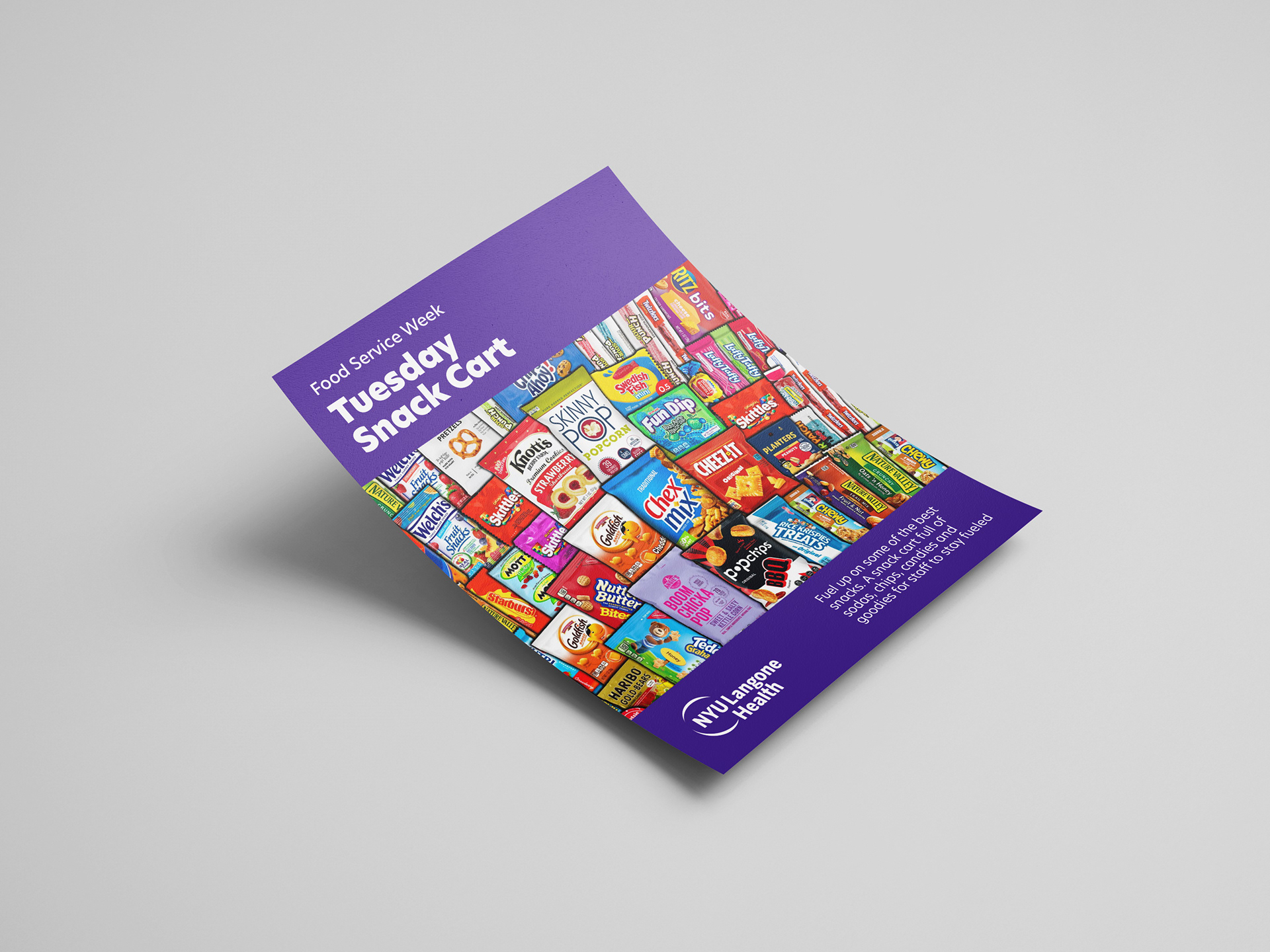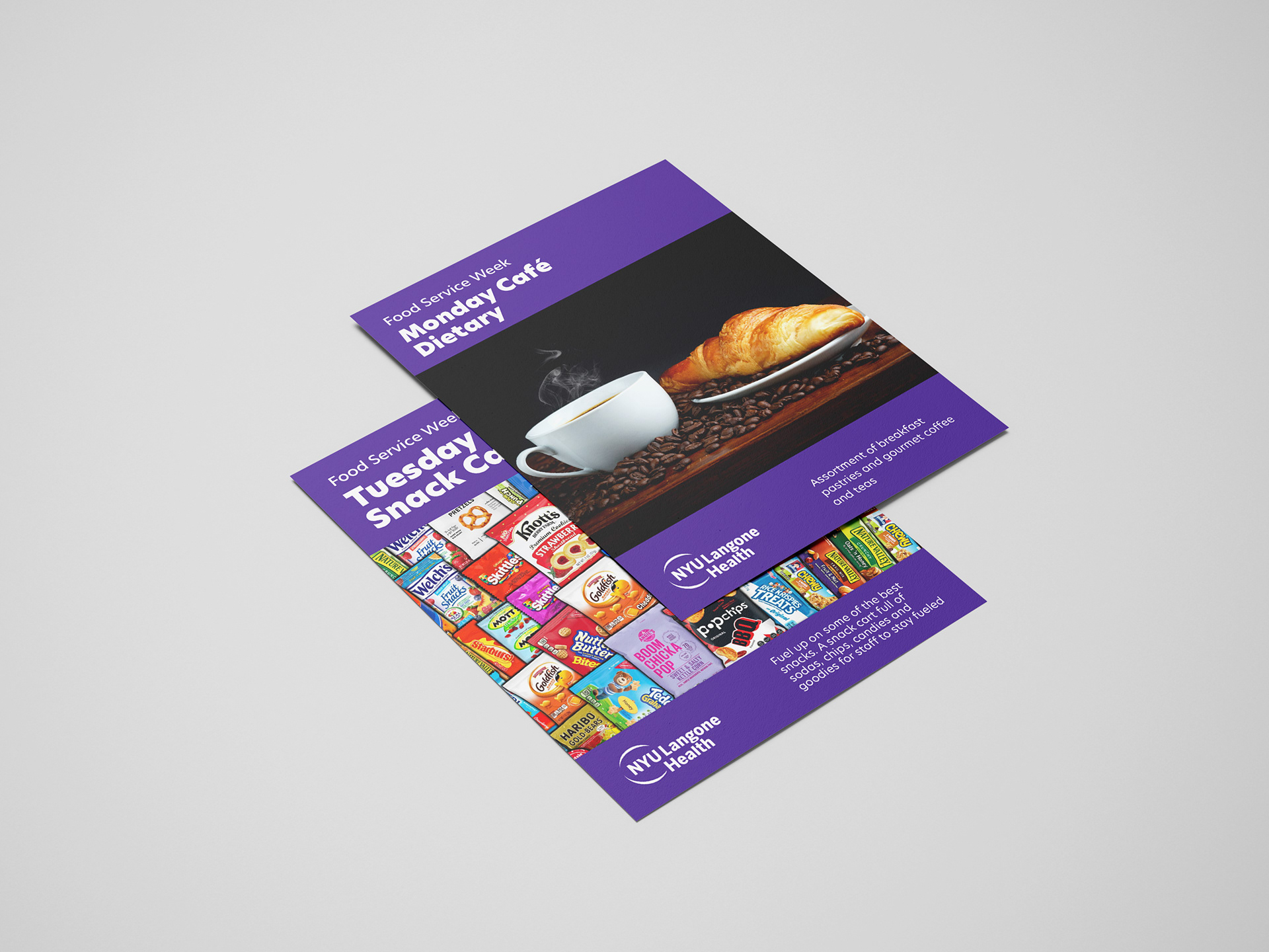 I was tasked to design flyers for NYU Langone Brooklyn Food service week. I designed for them a system in which they can reuse in the future to generate more material.